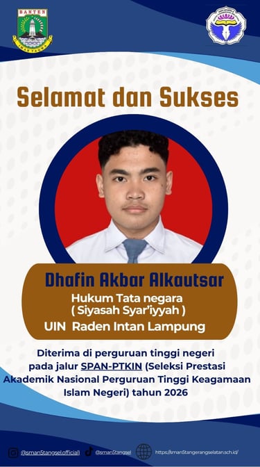 TANGERANG SELATAN – Kabar membanggakan kembali menyelimuti keluarga besar SMA Negeri 5 Tangerang Selatan. Salah satu putra terbaiknya, Dhafin Akbar Alkautsar, dinyatakan lulus dalam seleksi nasional SPAN-PTKIN 2026.